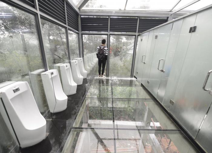 این توالت ها با دیواره کاملا شیشه ای، هم به خوبی درونش را می شود دید و از تمیزی و امنیت آن خبردار شد و هم به خاطر نصب شیشه های هوشمند به محض بسته شدن آن از درون، تبدیل به شیشه مات می شود و دیگر درون توالت قابل روئیت نیست.