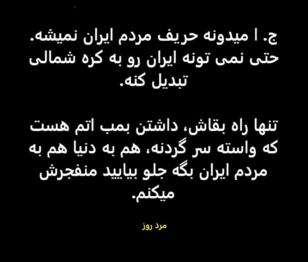 جمهوری اسلامی فاسد ناکارآمد هیچ راه دیگری باقی نگذاشته جز بقای خودش از طریق کشتار جمعی.