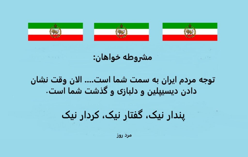 مشروطه خواهان شما را به هر چه دوست دارید قسم خشمگین نشوید. نظرهای متفاوت و مخالف در بین یک کشور ۹۰ میلیونی طبیعی و سالم است. سعی کنید در هر شرایطی نغمه مخالف را تحمل کنید.