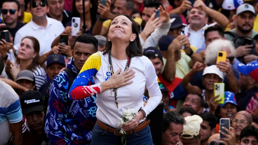 فیلم امروز ماچادو که بعد از سالها در ملا عام به ونزوئلا برگشته و مورد استقبال مردم قرار گرفته