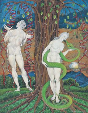 آدم و حوا در یک موقعیت غیرواقعی، در محیطی «که مملو از گلهای رنگارنگ بدون خار است» (کتاب ۴- شعر ۲۵۶) و «سرزمینی که در آن جهالت، شادیبخش است» (کتاب ۴- ۵۱۹) زندگی میکردند. تنها کاری که این دو معشوقه را مشغول میداشت، عشقبازی بود و بس: «سینه بزرگ و لخت حوا، سینههای اولین پدر همه ما را زیر خورشید طلایی ملاقات میکرد» (کتاب ۴- ۴۹۵-۶).