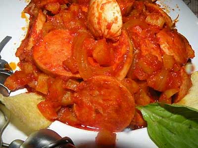 فرق اساسی این خوراک جنوبی ( شبیه آملت) در داشتن سیب زمینی و نداشتن تخم مرغ بود. نحوه اضافه کردن سیب زمینی، سخت ترین بخش تهیه این غذا است. شگرد اصلی در سرخ شدن و همزدن مداوم سیب زمینی ها برای حدود 15 دقیقه است. وقتی که سیب زمینی به همراه سس گوجه، ادویه جات و پیاز، کاملا سرخ، له و پخته شد، سوسیس ها به غذا اضافه می شود و همان نحوه سرخ کردن و همزدن مداوم تا آنکه سوسیس ها پخته شوند ادامه می یابد.