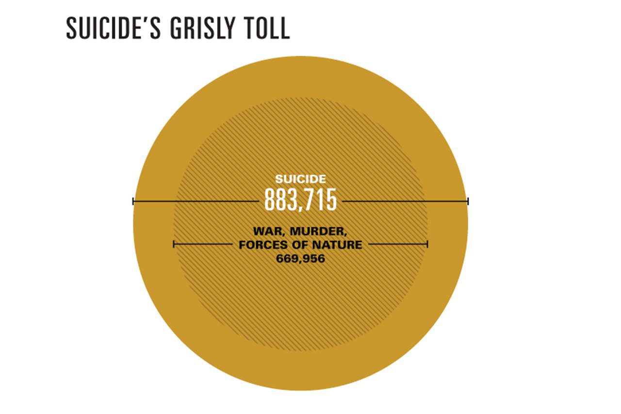 در طی نیم قرن گذشته میلیونها انسان در سراسر جهان قربانی خودکشی شده اند. از سال ۱۹۹۹ هر سال بر تعداد افرادی که در امریکا خودشان را می کشند افزوده شده است. این پدیده مختص امریکا و کشورهای غربی نیست. در سال ۲۰۱۰، خودکشی بالاترین رقم دلیل مرگ در جهان را به خود اختصاص داده است.