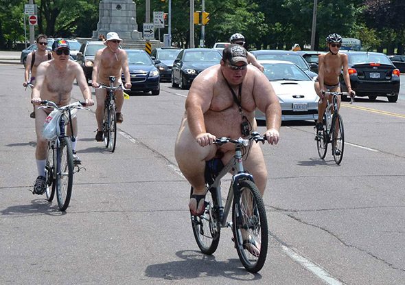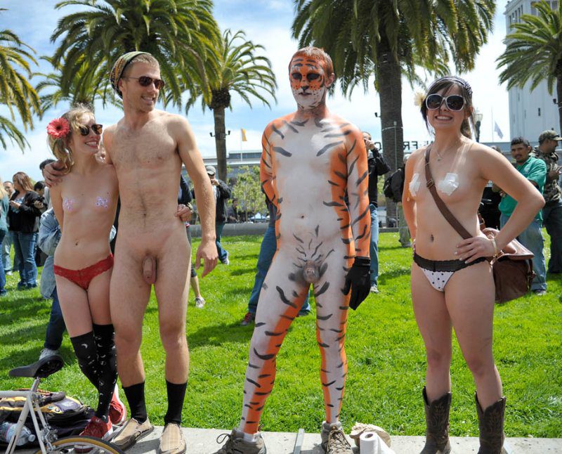 از سال 2004 نقشهِ نوعی اعتراض عمومی به مصرف بنزین و افزایش ناخوشایند ماشین های شخصی در شهرها کشیده شد. اعتراضی که خود را در مجموعه « دوچرخه سواری لخت دنیا» و کارناوال شان در ماه تیر ( ژوئن) متحد ساخت. در همان سال، در اولین دوچرخه سواری لخت و اعتراضی، 28 شهر از 10 کشور جهان شرکت داشتند که این رقم به 74 شهر از 17 کشور جهان سرایت کرد.