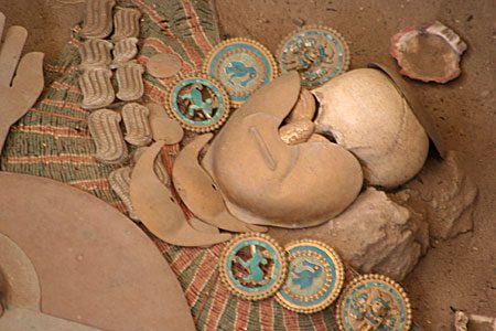 جسد سگ مخصوص حاکم نیز به همراه وی به خاک سپرده شده بود. تلی از کوزه های هدایا و آذوقه برای بعد از مرگ نیز در محوطه سرپوشیده قرار دارد.